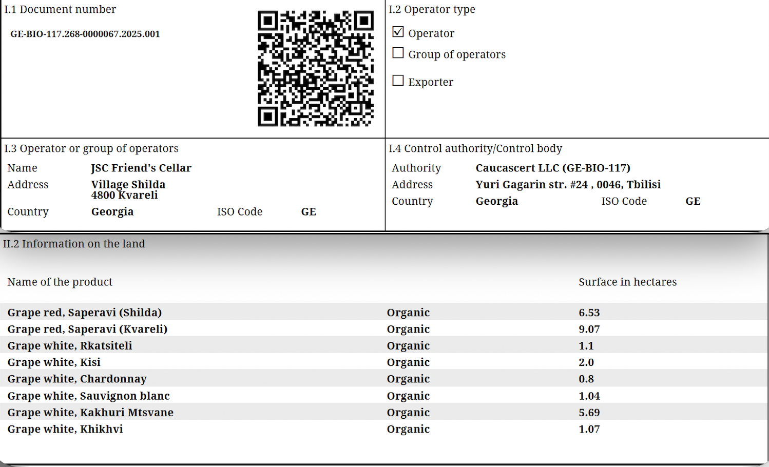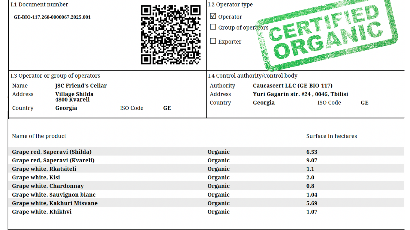 In 2025 JSC Friends Cellar has completed 5 year transition period of organic farming and now all vineyards of Ikano Estate is certified for organic production.